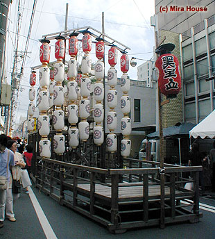 宵山では様々な懸装品が公開されるほか,前年の巡行を飾った桜花をあしらった粽の授与,や和タオルや祇園祭のパンフレットなどの販売も行われる。黒いシックな団扇は人気だ。
