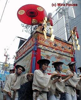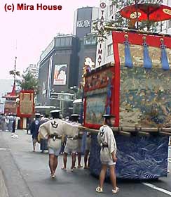 ![]() 四条通で長刀鉾,白楽天山に続く占出山。 長刀鉾は辻回しの途中。 |